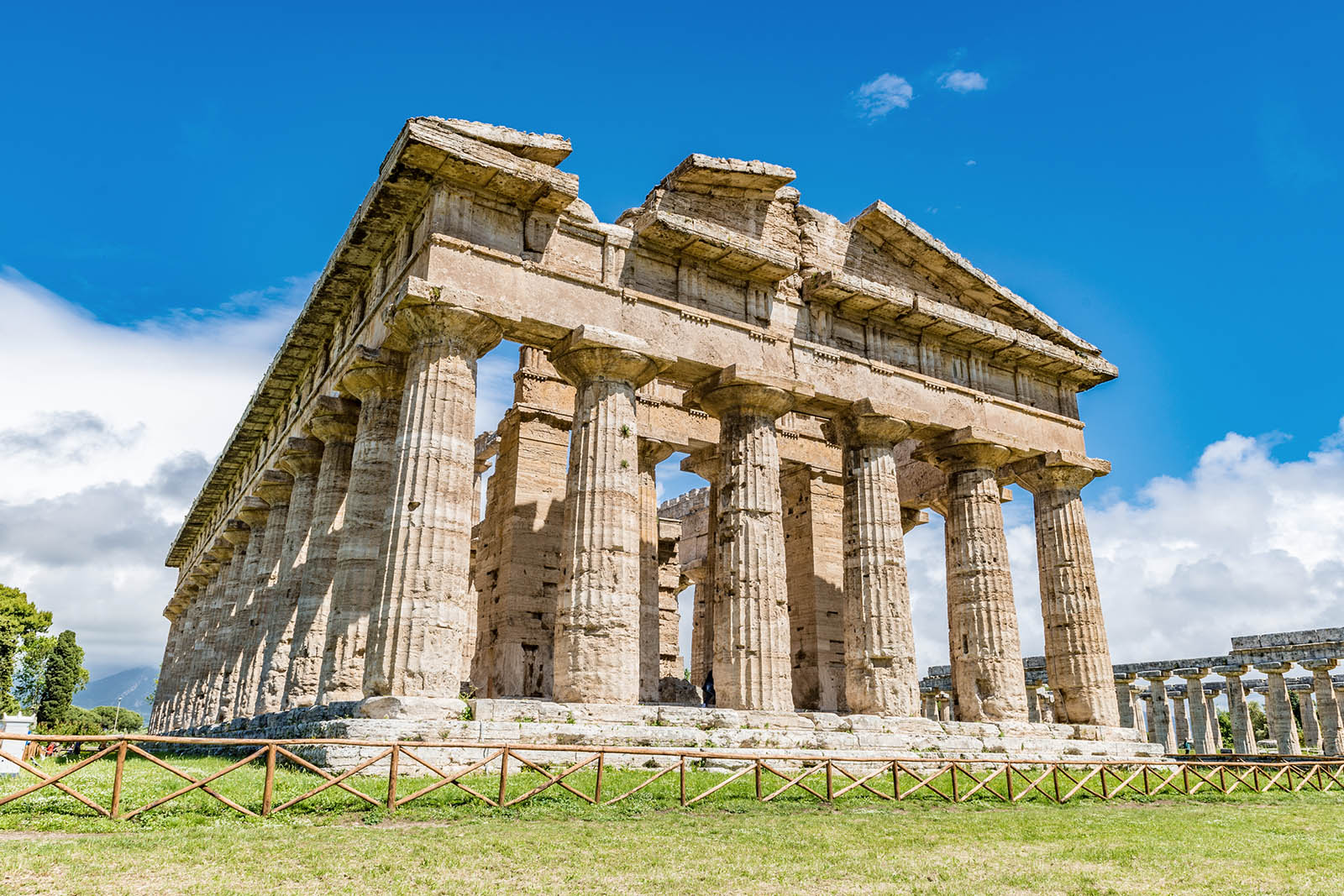 Le dita scorrono sulla superficie ruvida del travertino locale, una pietra porosa che trattiene il calcare e il calore del sole campano anche quando scende la sera. Siamo in Campania, all’interno del Parco Archeologico di Paestum, uno dei complessi meglio conservati della Magna Grecia, oggi parte del circuito dei musei e delle aree archeologiche italiane. Qui la città greca di Poseidonia, fondata nel 600 a.C., iniziò la sua metamorfosi nella colonia latina di Paestum. Davanti a noi si stende un palinsesto di pietra: i resti di una civiltà che fuse l’eleganza dei coloni di Sibari con il pragmatismo urbanistico di Roma. Il sito occupa 120 ettari, cinta da mura lunghe quasi 5 chilometri, ancora visibili. Non è un semplice parco di rovine, ma un archivio vivente dove ogni blocco racconta come un emporio marittimo divenne caposaldo agricolo dell’Impero.