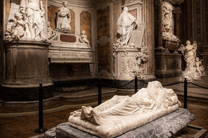 La Cappella Sansevero ospita a Napoli il Cristo Velato di Giuseppe Sanmartino, scultura del 1753 che ancora oggi ferma i visitatori davanti al marmo: un corpo ricoperto da un velo trasparente ricavato dallo stesso blocco di Carrara, con le ferite, le vene e le palpebre abbassate visibili attraverso la pietra. Il museo è uno dei siti più visitati della Campania, con oltre 600.000 ingressi annui, e deve la sua esistenza a Raimondo di Sangro, settimo Principe di Sansevero, inventore, anatomista e Gran Maestro della Massoneria napoletana. Le sale accolgono statue allegoriche, affreschi criptici e, nel sotterraneo, le celebri Macchine Anatomiche composte da scheletri umani con il sistema vascolare intatto. Tra i musei del Sud Italia, Sansevero occupa una posizione unica per la densità di significati concentrati in uno spazio di soli 80 metri quadri. Nessun altro luogo riesce a tenere insieme fede, scienza e simbologia con questa precisione ossessiva e con questa bellezza assoluta.